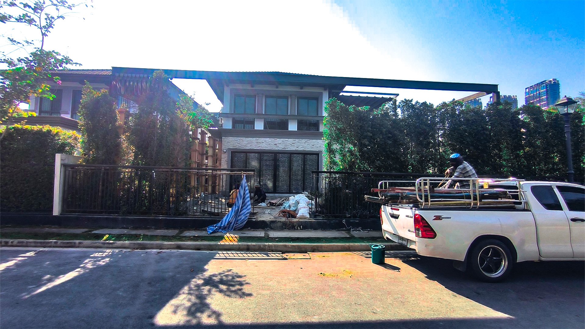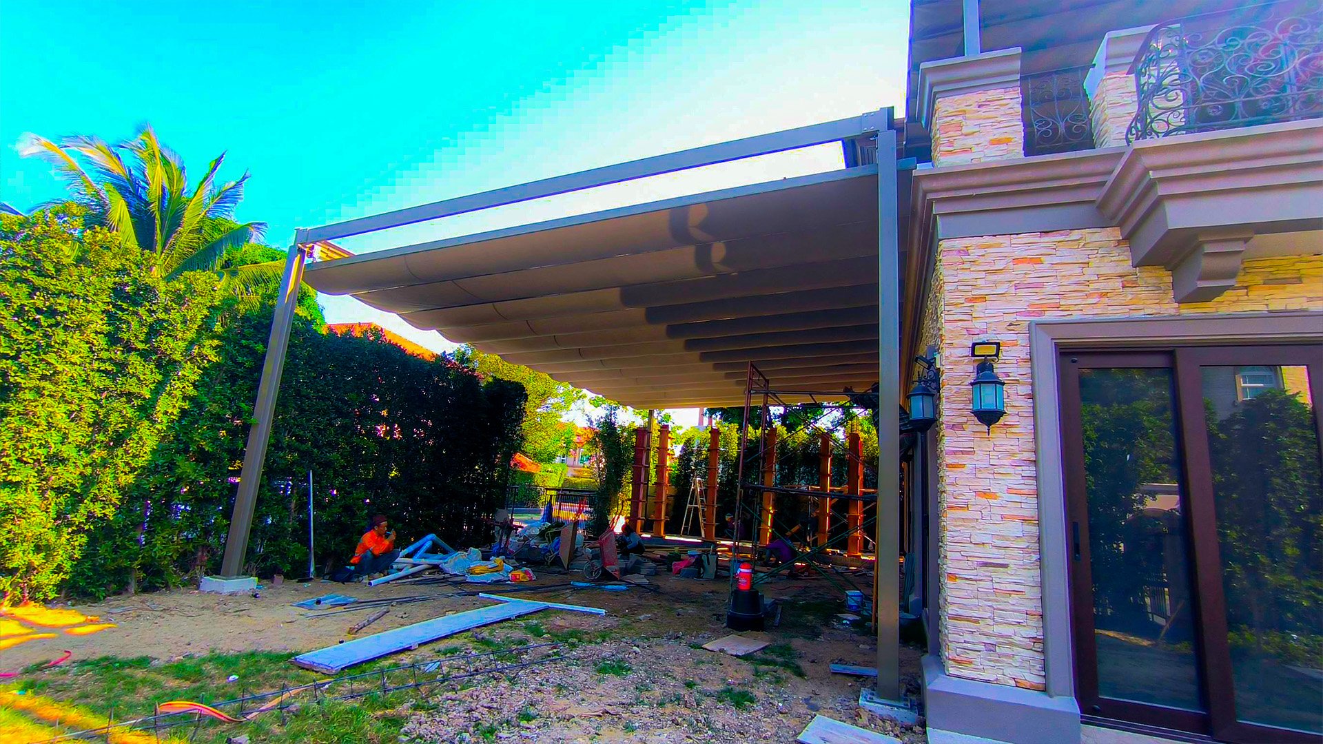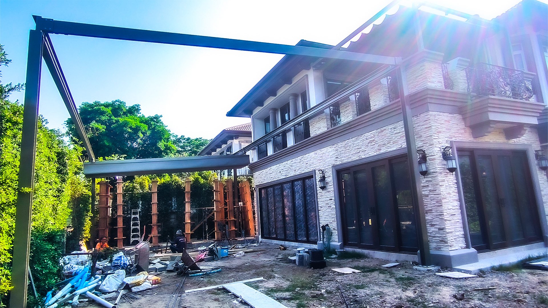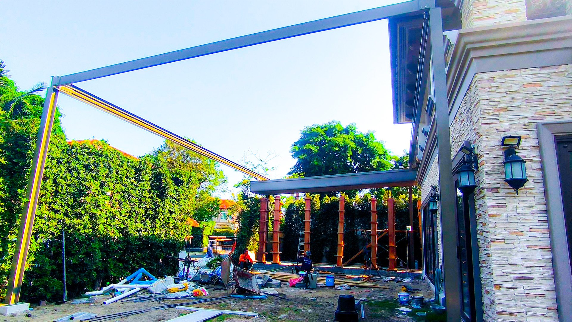เขาทำ “หลังคาเลื่อนผ้าใบ” ไว้หน้าบ้านอะ